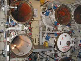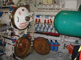 We are entering the torpedo room. These torpedos were capable of being fitted with nuclear warheads. |