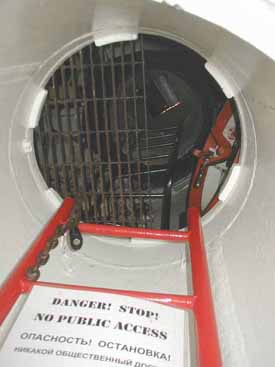 The Escape Hatch In the event of an emergency, upto 3 men could be put in the escape hatch. They would be ejected out into the ocean. They had to exhale during the entire ascent of up to 2 minutes, or they would get the bends and/or die.